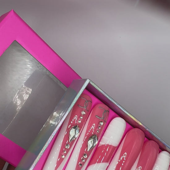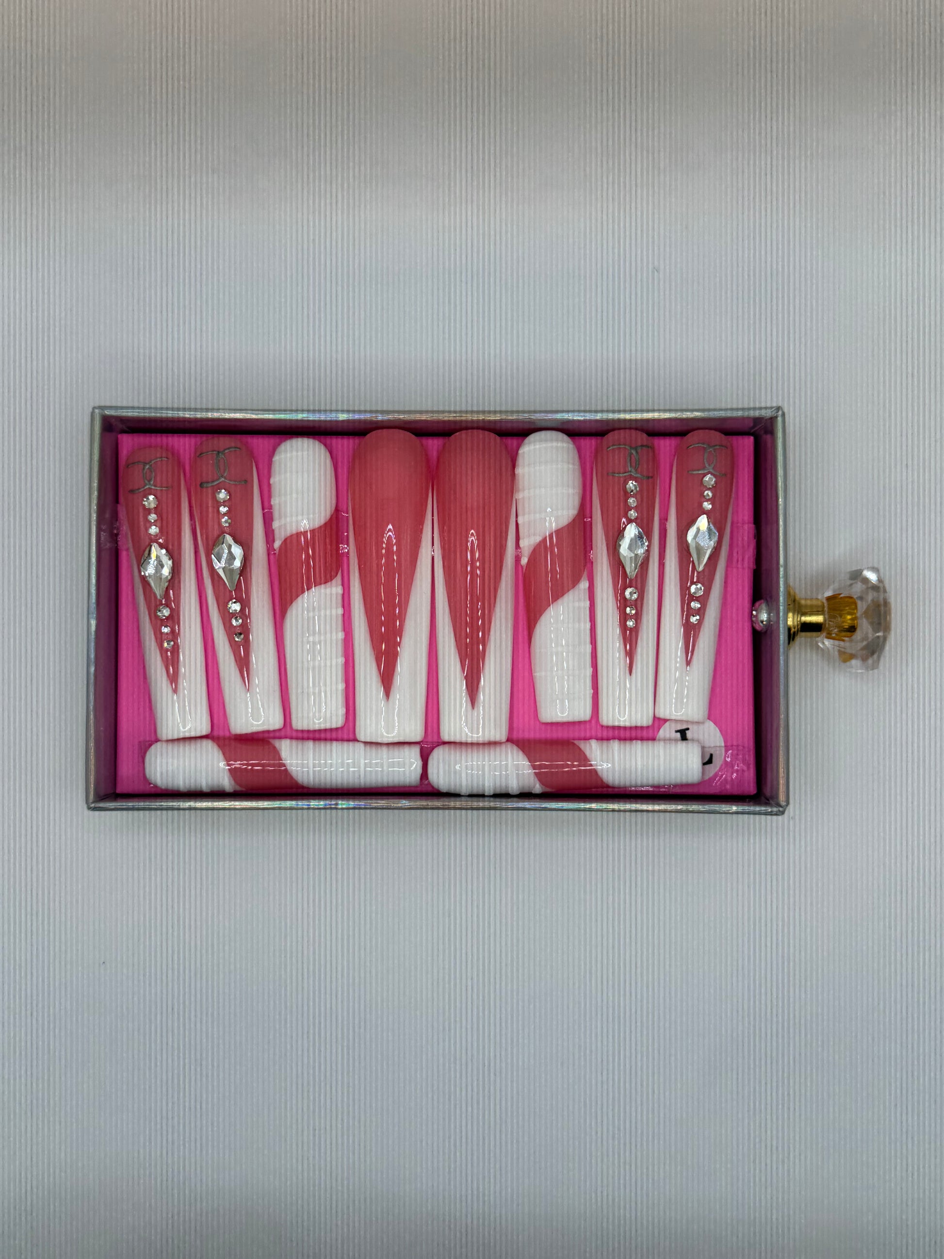 Abstrax Frenchie is a luxurious, modern twist on the classic French manicure. This bold set features an artistic blend of sleek pink tones and crisp white abstract tips, elevated with edgy translucent elements. Each nail is handcrafted for the babe who loves clean lines with a creative, high-fashion flair. Whether you’re making a statement at brunch or standing out on a night out, Abstrax Frenchie is the perfect fusion of elegance and edge