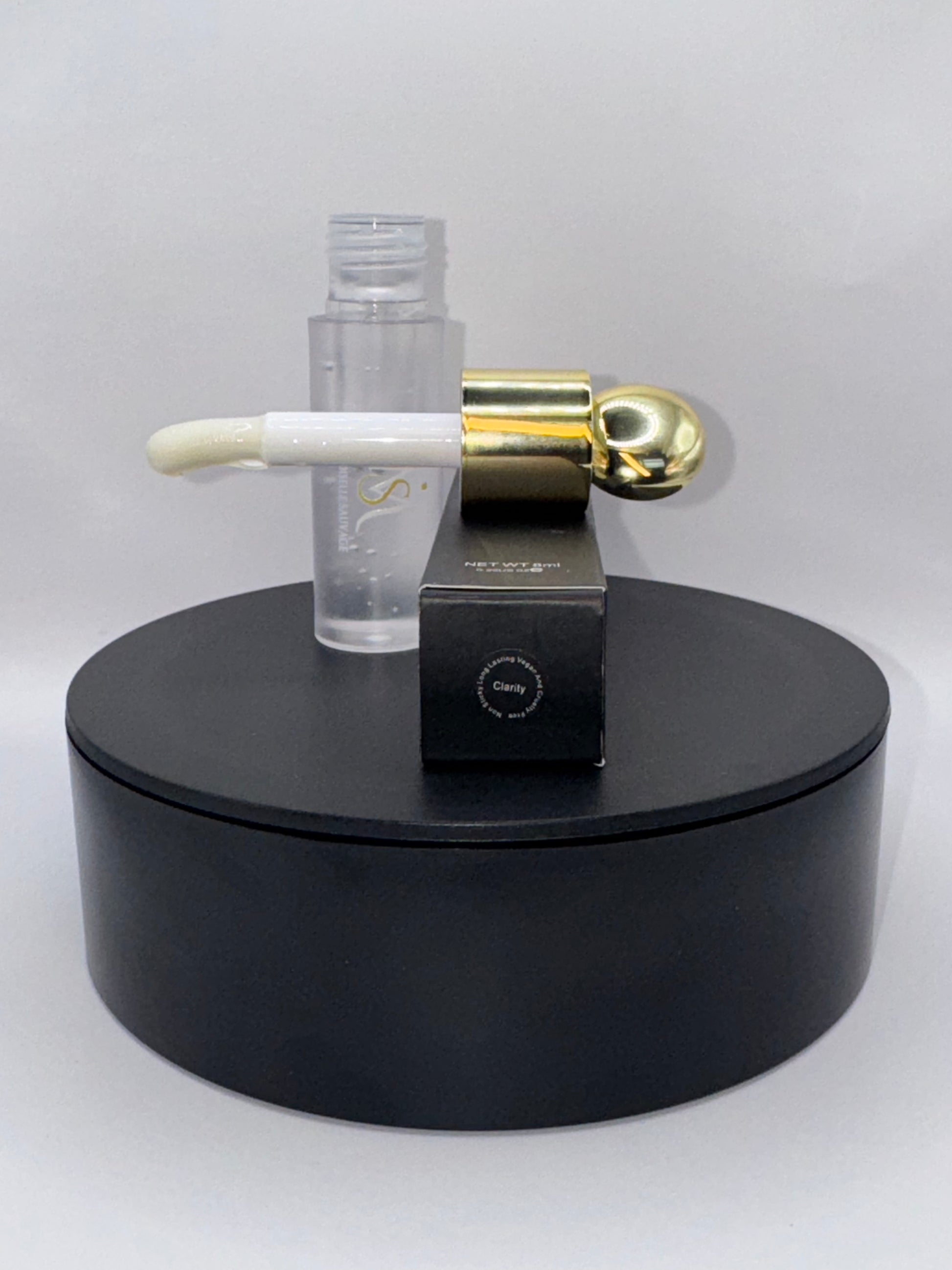 Shade Description: A crystal clear gloss with a glassy finish. Clarity adds high shine and moisture without color. Clarity is perfect for a natural glow or layering over any lip shade.